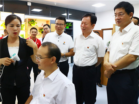 2018年8月17日上午,自治區(qū)黨委常委、統(tǒng)戰(zhàn)部部長(zhǎng)徐紹川同志率領(lǐng)市委常委、統(tǒng)戰(zhàn)部部長(zhǎng)趙紅明,區(qū)黨委統(tǒng)戰(zhàn)部部務(wù)委員、廣西中華職業(yè)教育社專(zhuān)職副主任馮華清,經(jīng)開(kāi)區(qū)黨工委委員、紀(jì)檢監(jiān)察組組長(zhǎng)趙大標(biāo)等一行16人,到和桂集團(tuán)調(diào)研指導(dǎo);并到源生堂商學(xué)院進(jìn)行參觀(guān)、體驗(yàn)。和桂集團(tuán)總裁、源生堂總經(jīng)理黃偉文、源生堂執(zhí)行總經(jīng)理舒志華等公司領(lǐng)導(dǎo),熱情接待了調(diào)研組一行。